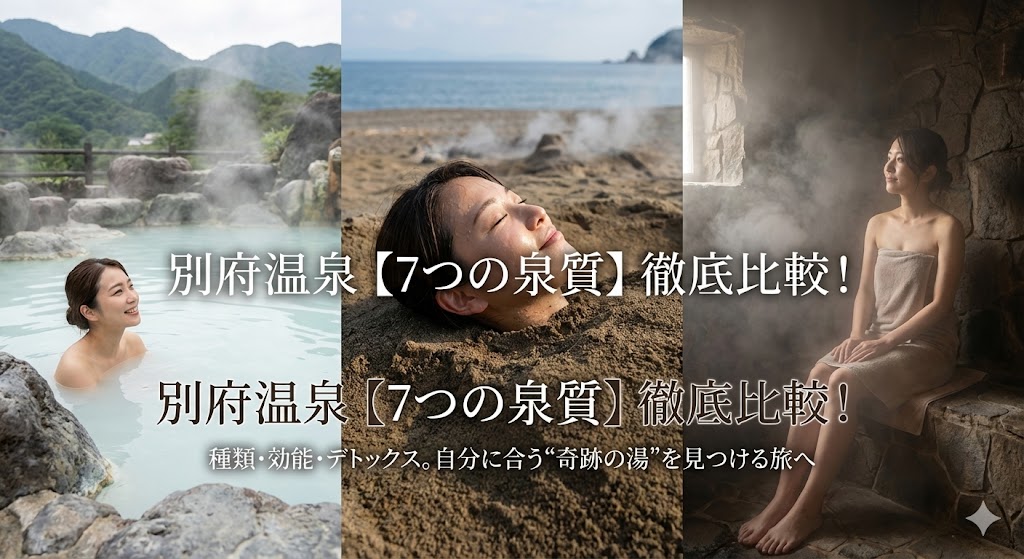 みなさんは温泉地といえばどこを思い浮かべますか? 日本一の湧出量を誇る大分県の別府温泉は、実は世界的に見てもかなり珍しい、まさに「奇跡」と呼ぶにふさわしい温泉地なんです。 これは、ただ温泉の数が多いだけでなく、その日の体調や目的に合わせて「お湯をサプリメントのように選べる」ということを意味します。 しかし、種類が多すぎて「どこに入ればいいのかわからない」「泉質の違いなんて気にしたことがない」という方も多いのではないでしょうか。 それは非常にもったいないことです! 今回はそんな別府の7つの泉質について、それ ...